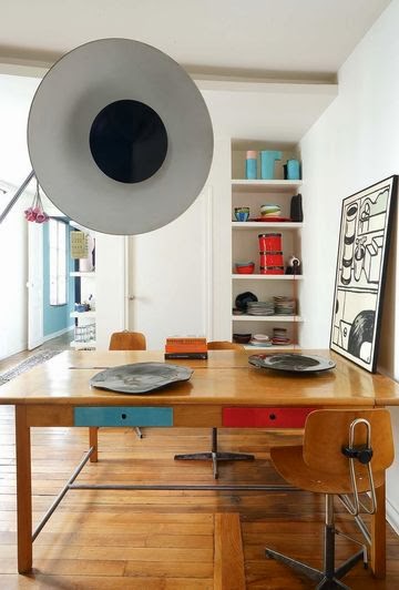 Perched directly above her shop, the Paris apartment of ceramicist Henriette Jansen is a lively mix of Henriette's own work with vintage and new objects — augmented here and there with a dash of bright colour. So inventive and fun. More here on Côté Maison.