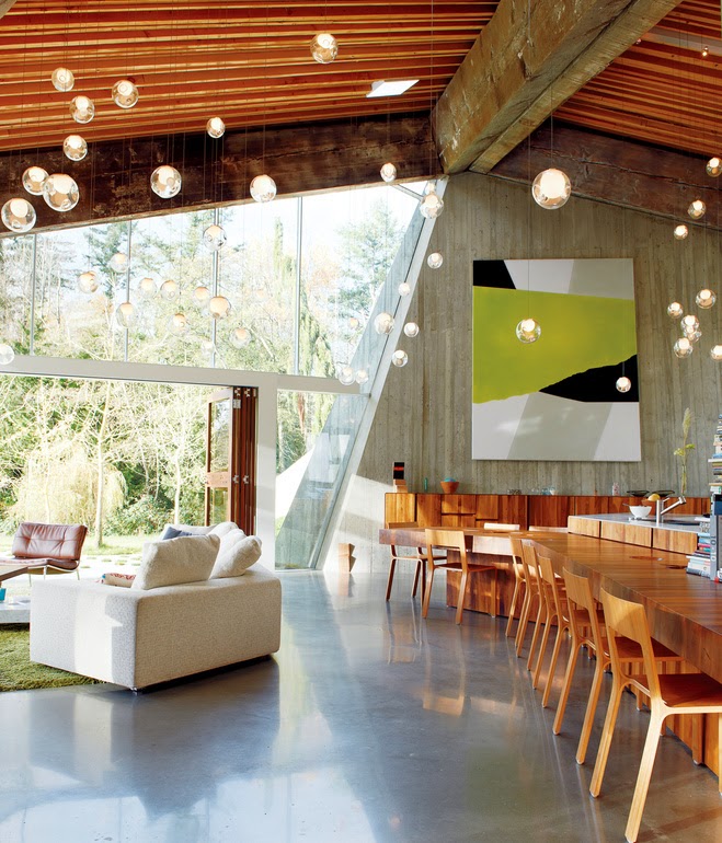 Surrounded on all sides by sweeping hayfields, this striking modern home in the Canadian west is an ode to rural life. Created by industrial designer Omer Arbel for his colleague Randy Bishop and family, the house is constructed from Randy's extensive collection of 100-year-old beams salvaged from a series of warehouses he owns — all preserved intact. Not a single reclaimed plank was cut or altered, giving the home its distinctive geometric look, described by Arbel as "a piece of origami... draped over the landscape." Stunning. More here on Dwell.
